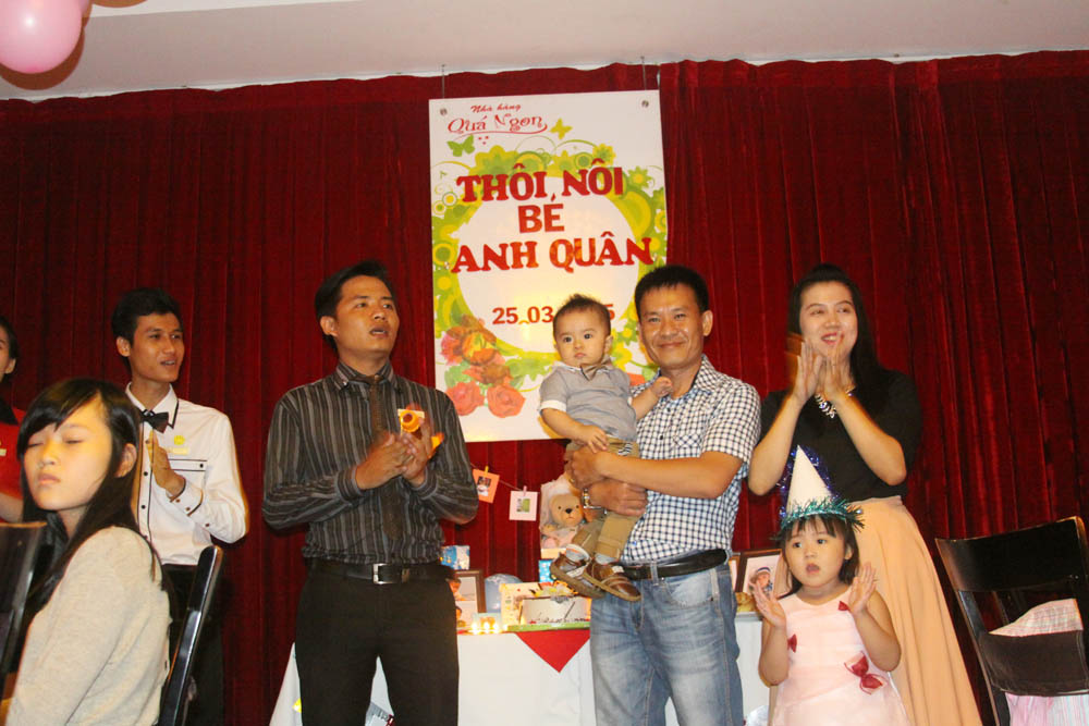 26 Th3 Tiệc thôi nôi bé Anh Quân ngày 25-03-2015 26.03.2015 Ảnh Tiệc 0 Comments 0 Share Facebook Google+ Twitter Pinterest LinkedIn Tiệc thôi nôi bé Anh Quân ngày 25-03-2015, Nhà Hàng Quá Ngon chúc bé ngoan, học giỏi và thông minh.