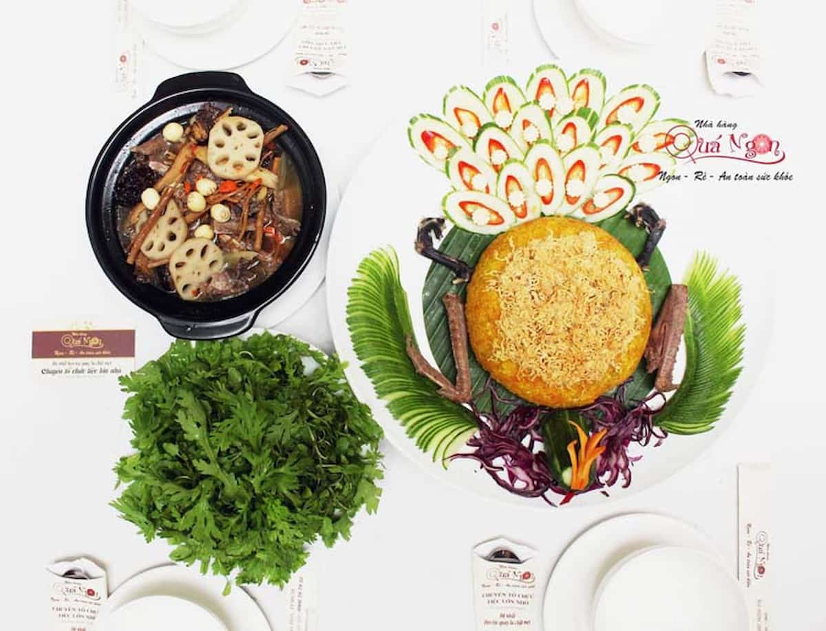 Nói về nước chấm của nhà hàng Quá Ngon thì phải nói là “chuẩn bài”, chấm cùng một miếng thịt heo giòn thơm đậm đà nữa là tuyệt vời, thêm các loại rau rừng vị chua, chát lá cóc, vị cay nồng của củ riềng, sả cây, chấm kèm với vị mặn của mắm tôm, tất cả hòa quyện lại với nhau tạo thành một hương vị siêu hấp dẫn ngay từ lần chạm đũa đầu tiên.