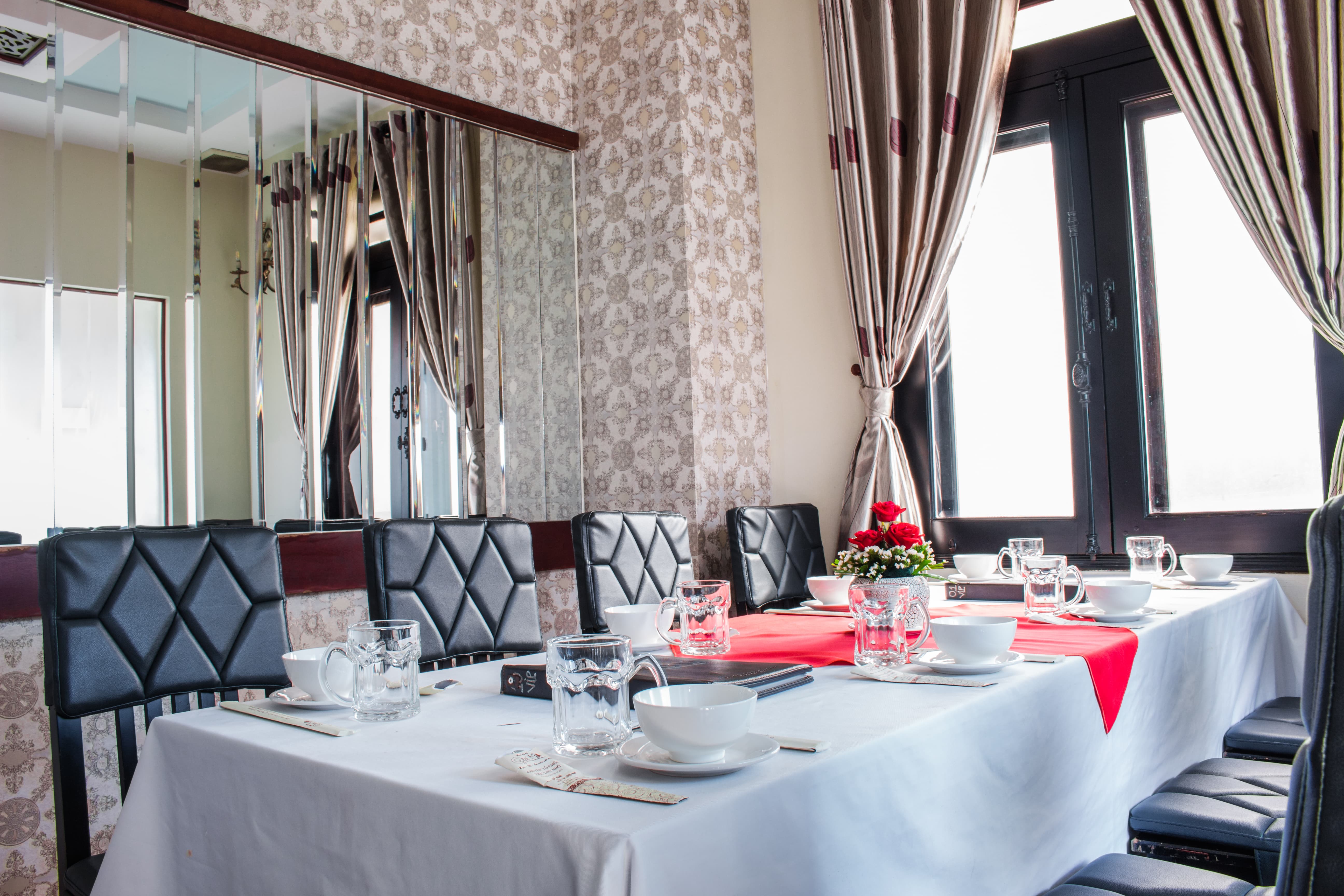 Với sức chứa 8 – 10 thực khách, không gian yên tĩnh, tầm nhìn thoáng thấy cây xanh, khung cảnh bên ngoài mang lại cảm giác thư thái, dễ chịu. Phòng VIP 8 là nơi thư giãn lý tưởng cho những buổi họp mặt, gặp gỡ bạn bè, tiếp khách.